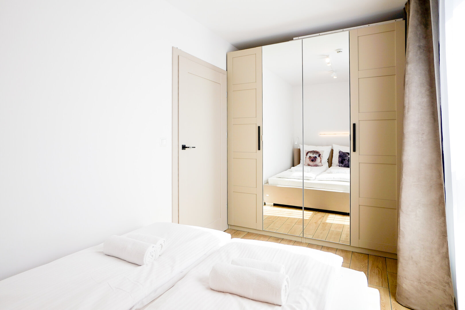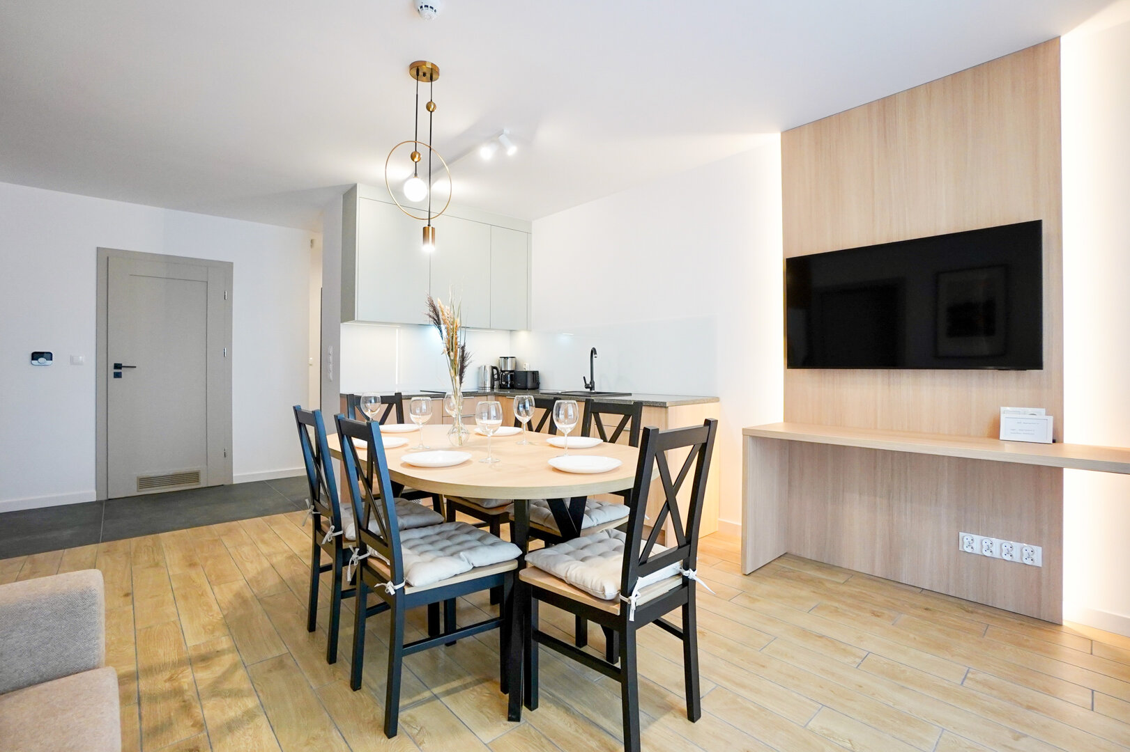 Dieses 52 m² große Apartment ist ideal für Familien oder Gruppen von Freunden, die Wert auf viel Platz und die Nähe zur Natur legen. Es befindet sich in der Park View Residence und überzeugt mit einer durchdachten Raumaufteilung sowie einem Interieur, das von der Umgebung des Wolliner Nationalparks inspiriert ist.