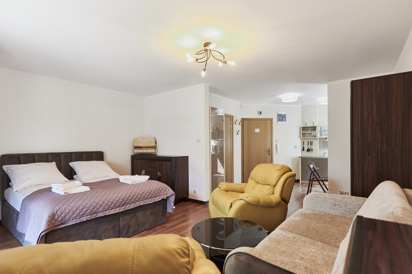 Das 38 m² große Rosa Weneda Apartment befindet sich im Erdgeschoss, mit südlicher Ausrichtung, und ist ideal für Paare oder eine Familie 2+1. Es zeichnet sich durch ein minimalistisches Design aus, das eine großzügige und komfortable Atmosphäre schafft. Es ist mit einer Küchenzeile und allen notwendigen Geräten ausgestattet sowie mit einem Zugang zu einer Terrasse, die sich perfekt für entspannende Momente im Freien eignet. Die senfgelben Sessel bringen Wärme und Farbe in den modernen Raum. Das Apartment liegt im Zentrum von Świnoujście, in der Nähe des Strandes und der touristischen Attraktionen.