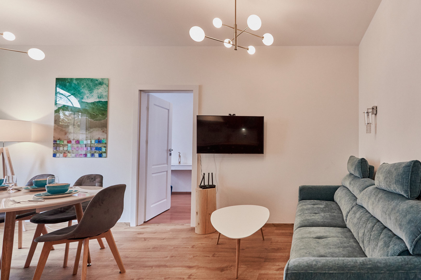 Das Apartment verfügt über eine voll ausgestattete Küchenzeile, die es ermöglicht, eigene Mahlzeiten zuzubereiten. Das moderne Badezimmer ist mit Handtüchern ausgestattet, und das geräumige Wohnzimmer bietet schnellen Internetzugang und Fernsehen, was es zu einem großartigen Ort zum Entspannen macht. Die komfortablen Schlafzimmer sind mit gemütlichen Betten ausgestattet, die eine ruhige Nachtruhe gewährleisten. Jedes Detail wurde sorgfältig bedacht, um den Bedürfnissen auch der anspruchsvollsten Gäste gerecht zu werden.