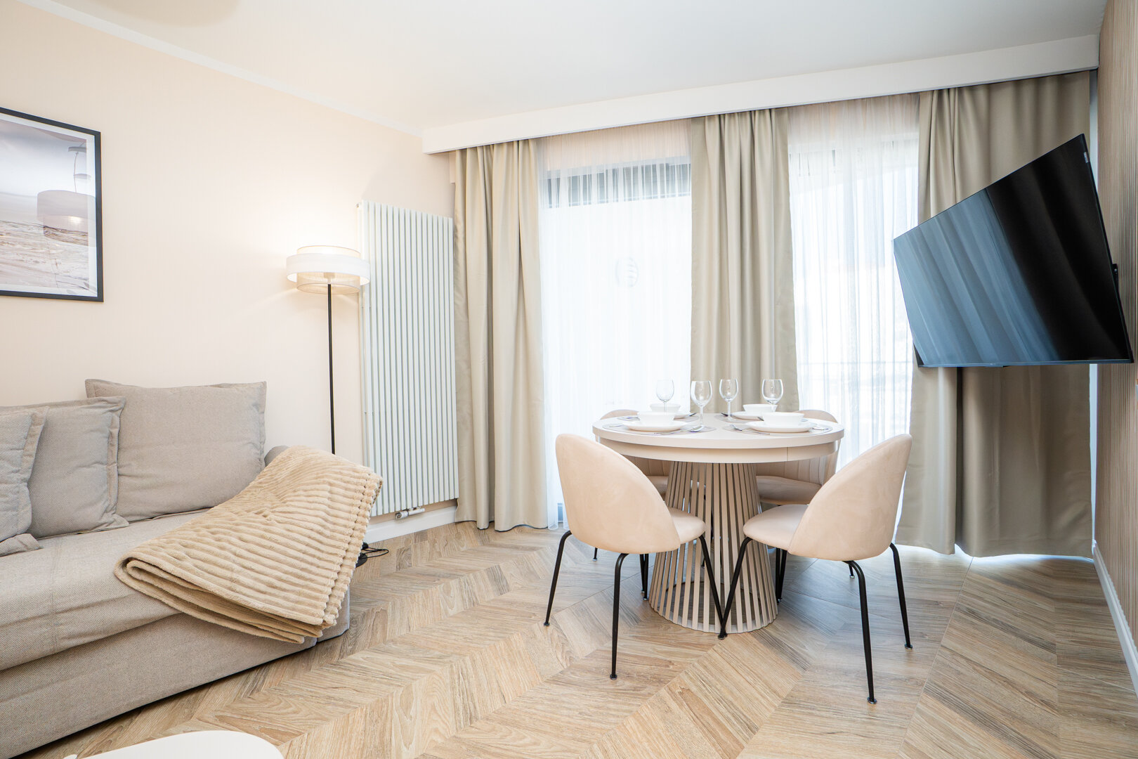 Die Endreinigungsgebühr beträgt zwischen PLN 150,00 und PLN 300,00 (der Betrag für die Reinigung ist individuell für jede Wohnung und erscheint in den weiteren Schritten der Reservierung) wird einmal pro Aufenthalt erhoben. Kurtaxe - 2,50 PLN pro Nacht für jede Person ist ebenfalls eine Gebühr, die bezahlt werden muss.
