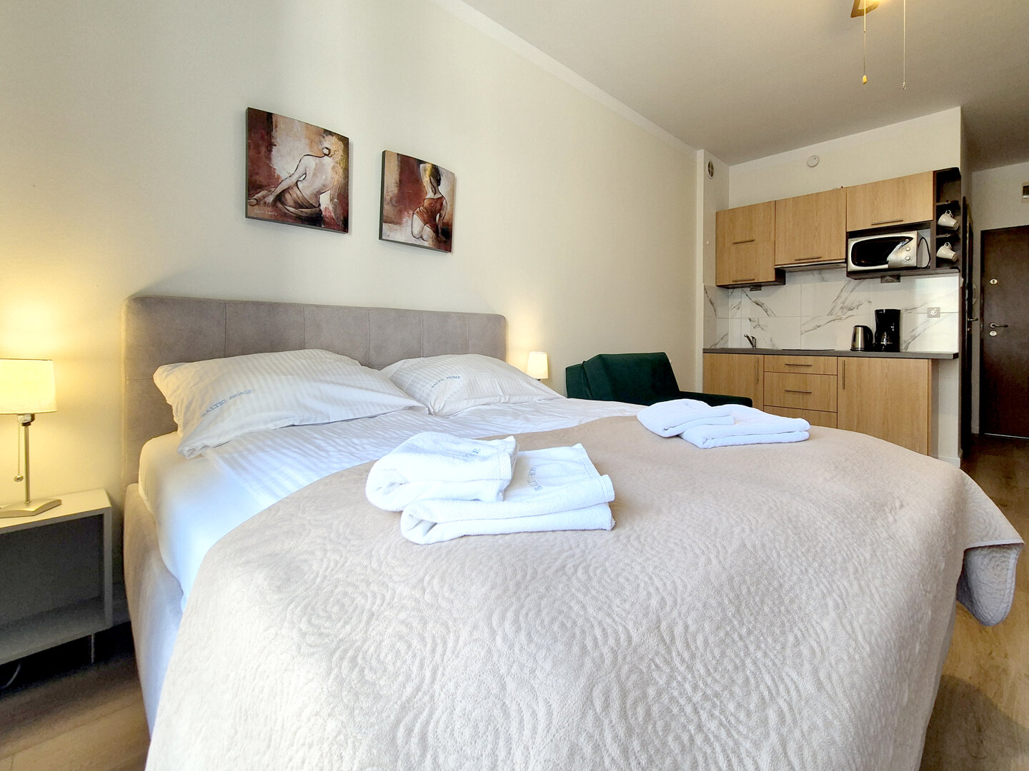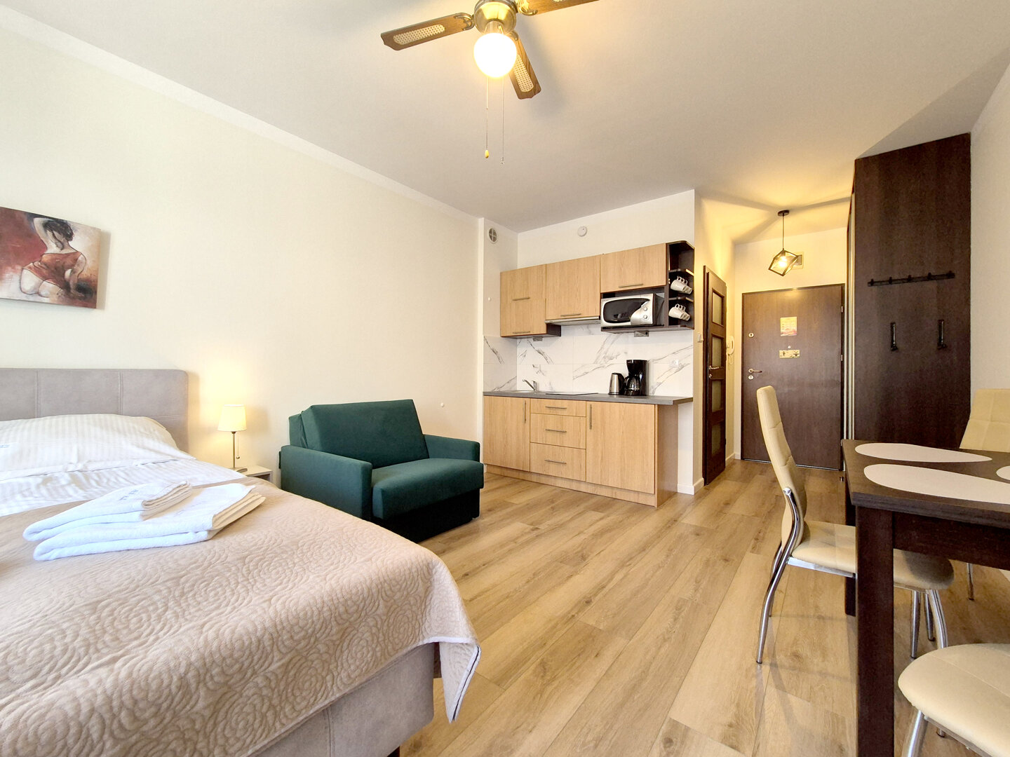 Das Apartment 32 Korona Jagiellonów ist eine geräumige 27 m² große Einheit für bis zu 3 Gäste, ideal für Paare oder kleine Familien. Es befindet sich im zweiten Stock des Komplexes Trzy Korony, nur wenige Gehminuten vom Strand und den lokalen Sehenswürdigkeiten entfernt. Perfekt für diejenigen, die einen komfortablen Aufenthalt am Meer suchen. Das Apartment bietet eine Küchenzeile, Balkon und weitere Annehmlichkeiten wie eine Waschmaschine, Fernseher und Kühlschrank.