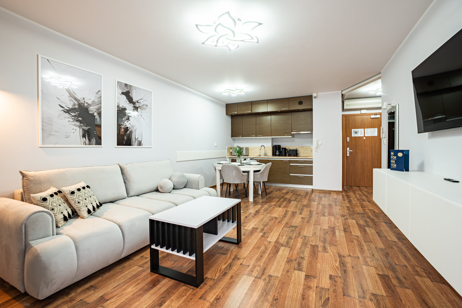 Die Endreinigungsgebühr beträgt zwischen PLN 150,00 und PLN 300,00 (der Betrag für die Reinigung ist individuell für jede Wohnung und erscheint in den weiteren Schritten der Reservierung) wird einmal pro Aufenthalt erhoben. Kurtaxe - 4,80 PLN pro Nacht für jede Person ist ebenfalls eine Gebühr, die bezahlt werden muss.