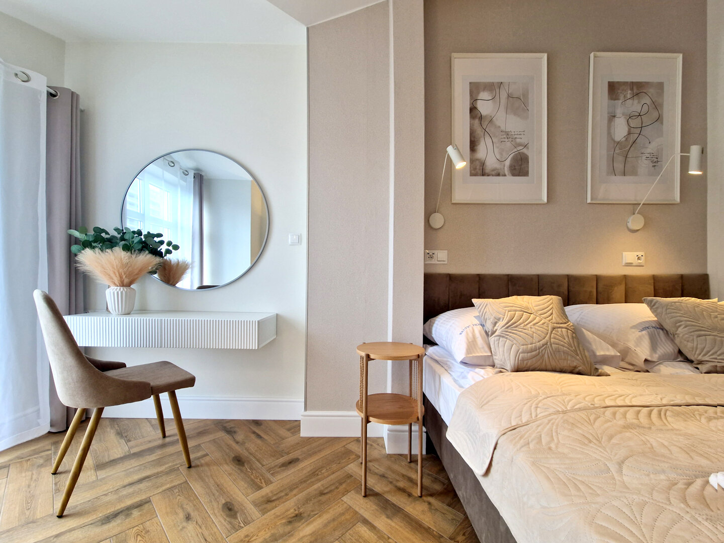 Die Endreinigungsgebühr beträgt zwischen PLN 150,00 und PLN 300,00 (der Betrag für die Reinigung ist individuell für jede Wohnung und erscheint in den weiteren Schritten der Reservierung) wird einmal pro Aufenthalt erhoben. Kurtaxe - 4,80 PLN pro Nacht für jede Person ist ebenfalls eine Gebühr, die bezahlt werden muss.