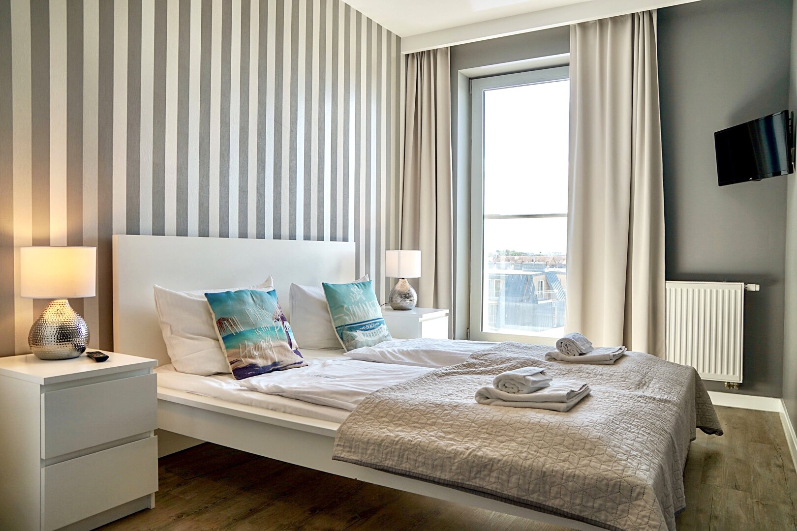 * Schlafzimmer mit Doppelbett und TV