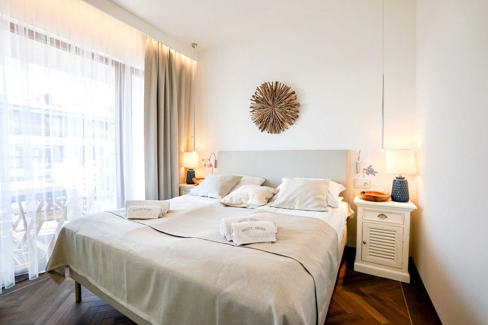 Das Apartment 6/3/5 BPPlaza ist eine helle, moderne Unterkunft im dritten Stock des Baltic Park Plaza-Gebäudes, nur wenige Schritte vom Strand entfernt. Vom Balkon aus bietet sich ein seitlicher, teilweiser Meerblick, der das maritime Flair unterstreicht.