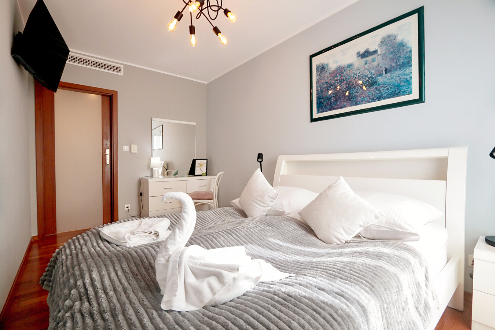 Die Endreinigungsgebühr beträgt zwischen PLN 150,00 und PLN 300,00 (der Betrag für die Reinigung ist individuell für jede Wohnung und erscheint in den weiteren Schritten der Reservierung) wird einmal pro Aufenthalt erhoben. Kurtaxe - 2,50 PLN pro Nacht für jede Person ist ebenfalls eine Gebühr, die bezahlt werden muss.