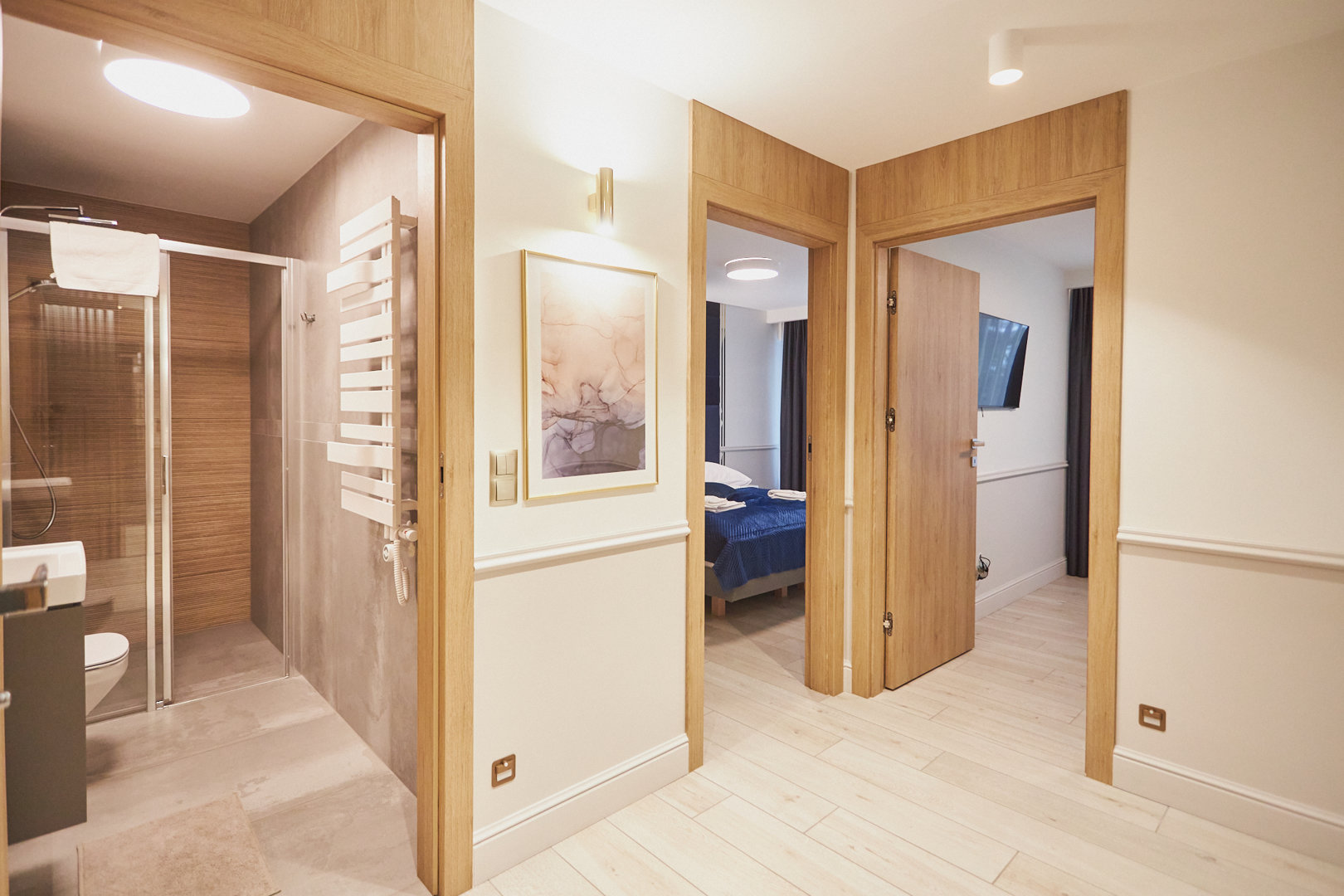 Das Baltycki-Apartment (78 m²) ist eine geräumige, dreizimmerige, zweigeschossige Wohnung mit zwei separaten Schlafzimmern. Die Terrasse bietet direkten Zugang zur neuen Gesundheits-Promenade. Moderne Innenräume und hoher Standard schaffen eine Atmosphäre des Komforts. Zwei Badezimmer und eine Küchenzeile sorgen für Bequemlichkeit. Umgeben von Grün, in der Nähe des Meeres und am Eingang zum Strand, zwischen der Seepromenade und der neuen Gesundheits-Promenade. Parkmöglichkeiten sind vorhanden, kostenpflichtig und müssen reserviert werden.
