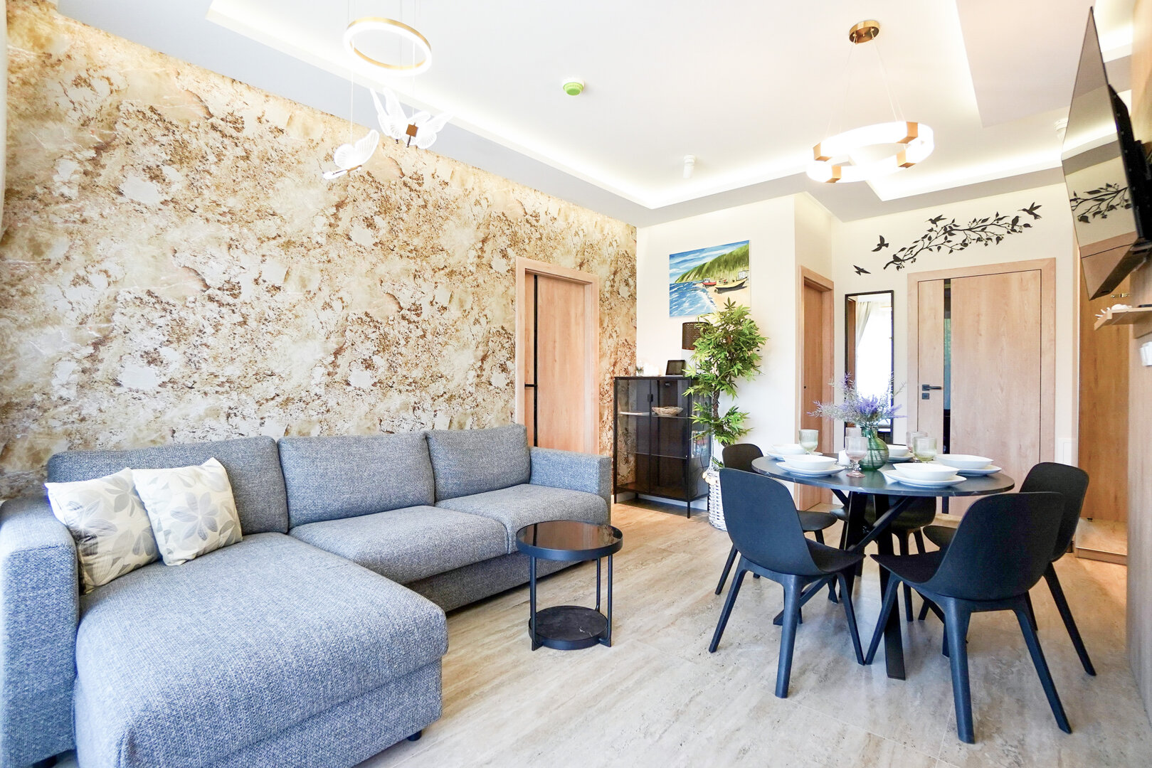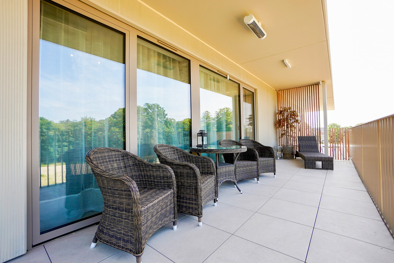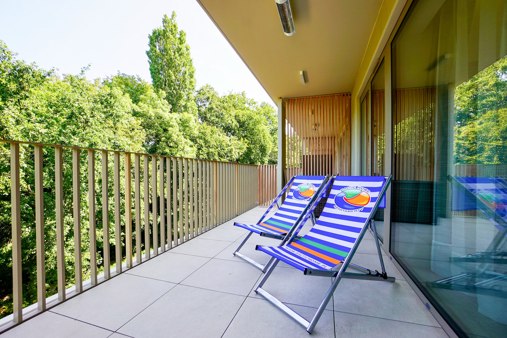 Greeneri Park ist ein eleganter, neu errichteter Apartmentkomplex direkt am Kurpark, nur 5 Gehminuten von der Promenade und dem Strand entfernt. Über 75 % der Fläche sind begrünt oder als Erholungsbereich gestaltet – ideal für Urlaubsgäste, die Ruhe und Natur schätzen. Die Architektur ist modern, mit großzügigen Terrassen (teilweise beheizt) und hochwertiger Ausstattung.
