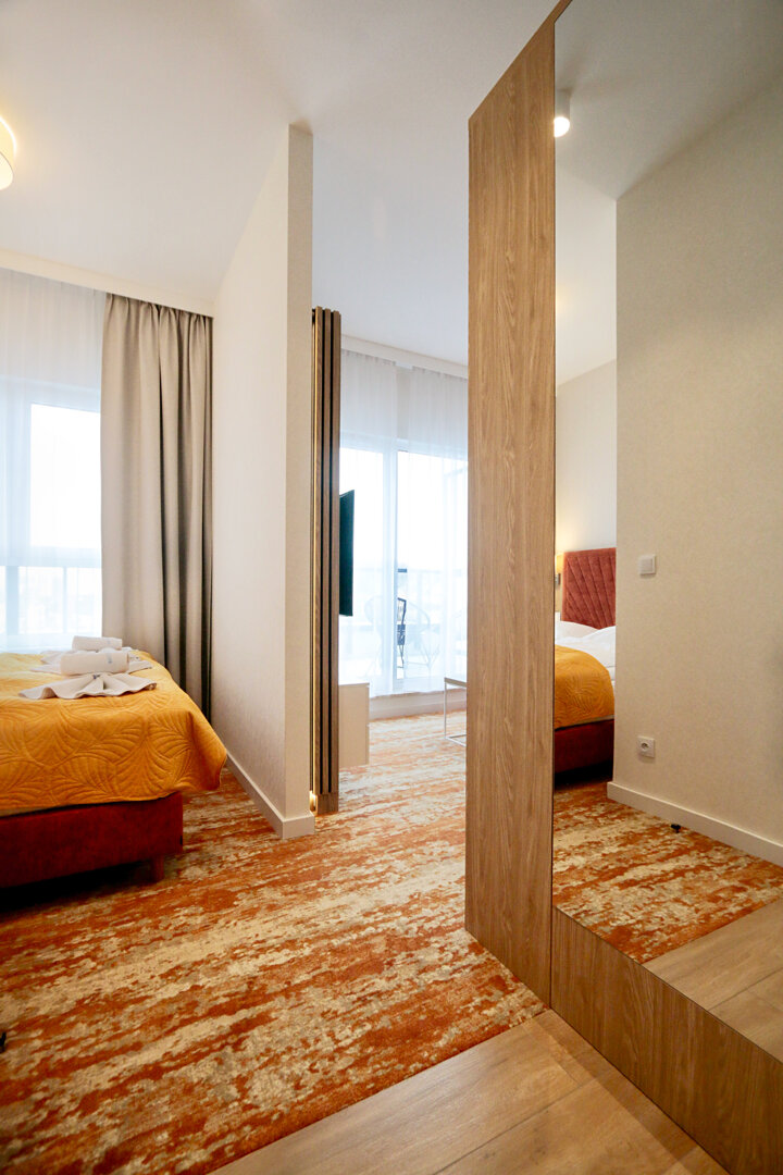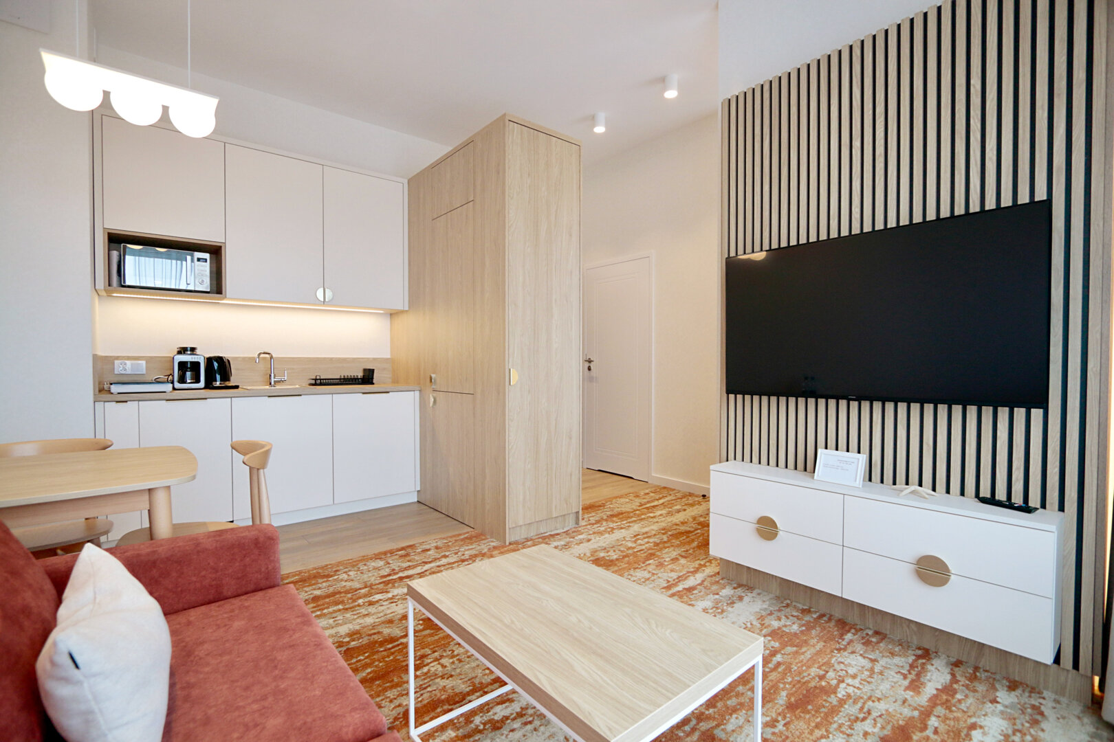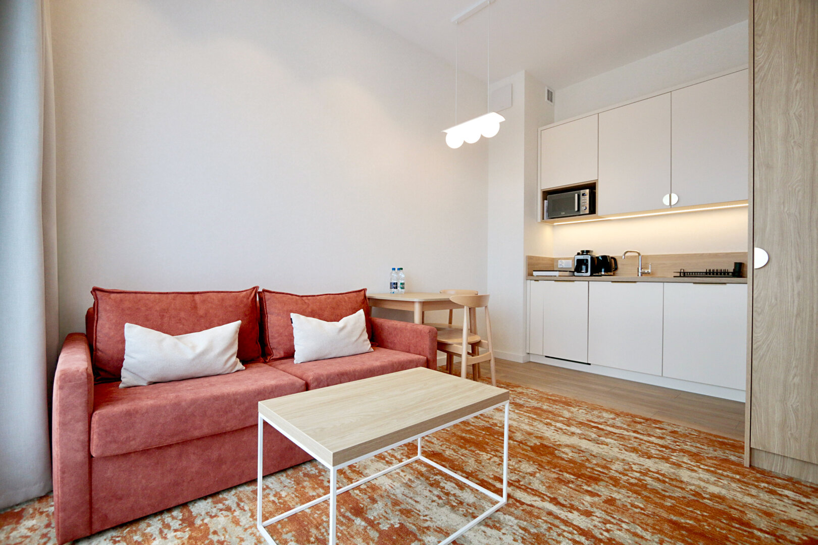 Die Wohnung ist für maximal 3 Personen gedacht und befindet sich im 6. Stock eines neu erbauten Resorts.