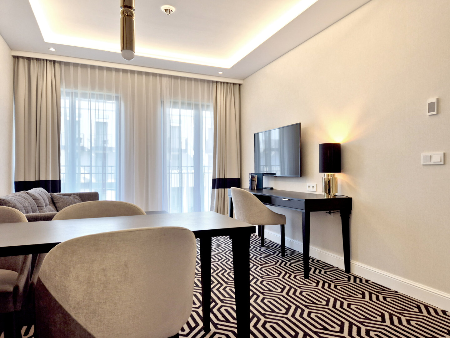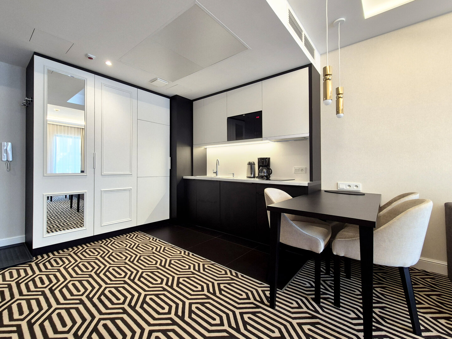 Das Apartment G307 ist ein exklusiver Raum in einem Gebäude mit markanter brutalistischer Architektur, das sich in unmittelbarer Nähe zum Strand und Stadtzentrum von Świnoujście befindet. Die Innenräume zeichnen sich durch hochwertige Ausstattung, weiche Teppichböden und sorgfältig ausgewählte Details aus. Es besteht aus einem eleganten Schlafzimmer, einem Wohnbereich mit Küchenzeile und einem modernen Badezimmer. Der Balkon bietet zusätzlichen Raum zur Entspannung. Eine ideale Wahl für Familien und Gruppen von Freunden, die Komfort und Stil schätzen. Parkplätze stehen auf dem Gelände zur Verfügung – eine vorherige Reservierung ist erforderlich.