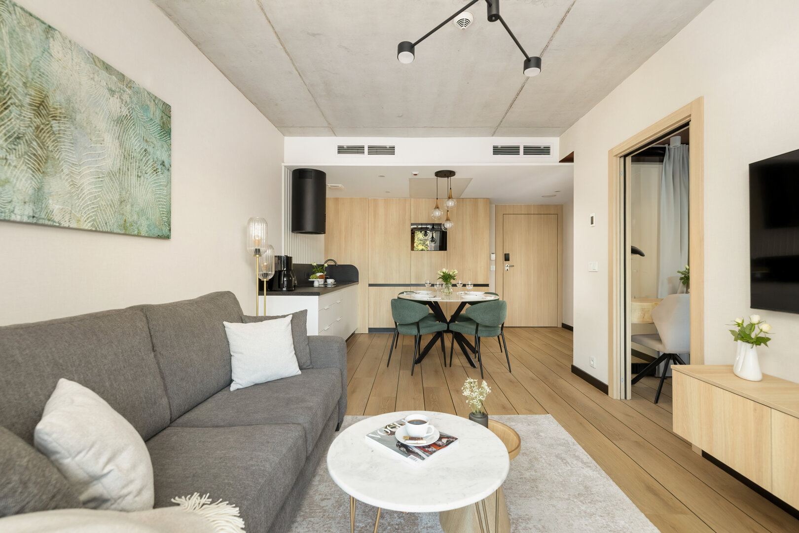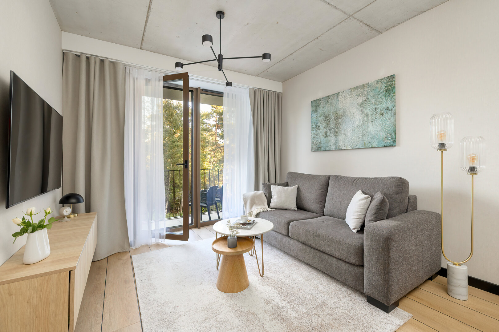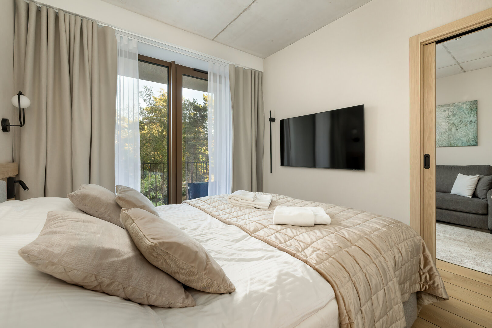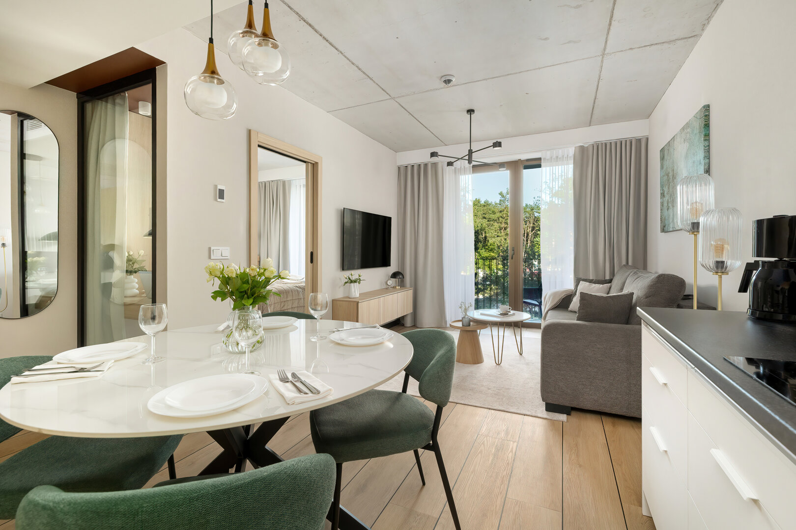 Das Apartment H114 befindet sich in einem modernen Gebäude mit einer markanten brutalistisch-loftartigen Architektur, direkt an der Promenade und am Strandzugang. Das Interieur verbindet moderne Elemente mit einem industriellen Stil und bietet ein geräumiges Wohnzimmer mit Küchenzeile, ein komfortables Schlafzimmer und ein elegantes Badezimmer. Große Fenster sorgen für reichlich Tageslicht, und der Balkon lädt zur Entspannung ein. Das Gebäude verfügt über zwei Aufzüge sowie eine Tiefgarage (Reservierung erforderlich). Ein perfekter Ort für diejenigen, die Komfort, Design und die Nähe zum Meer schätzen.