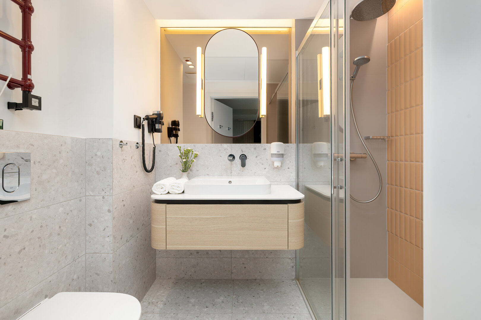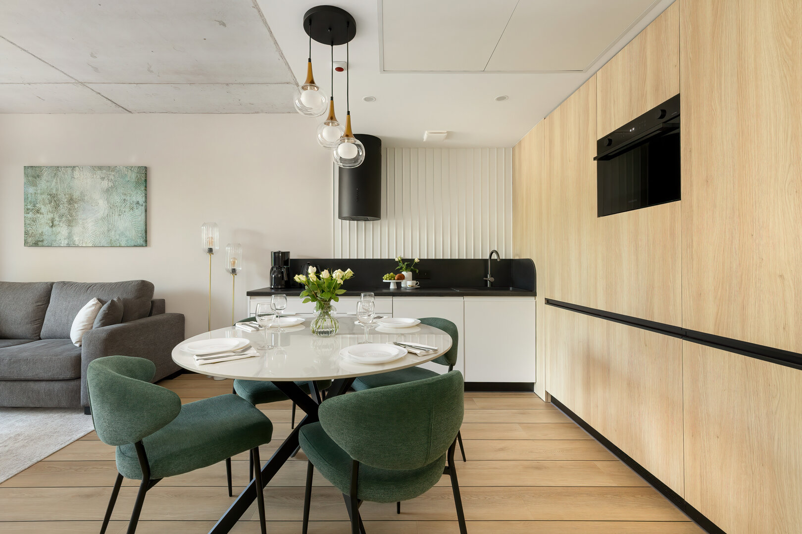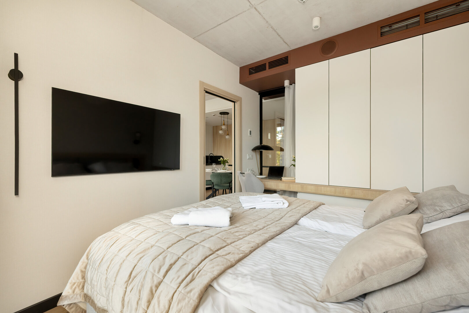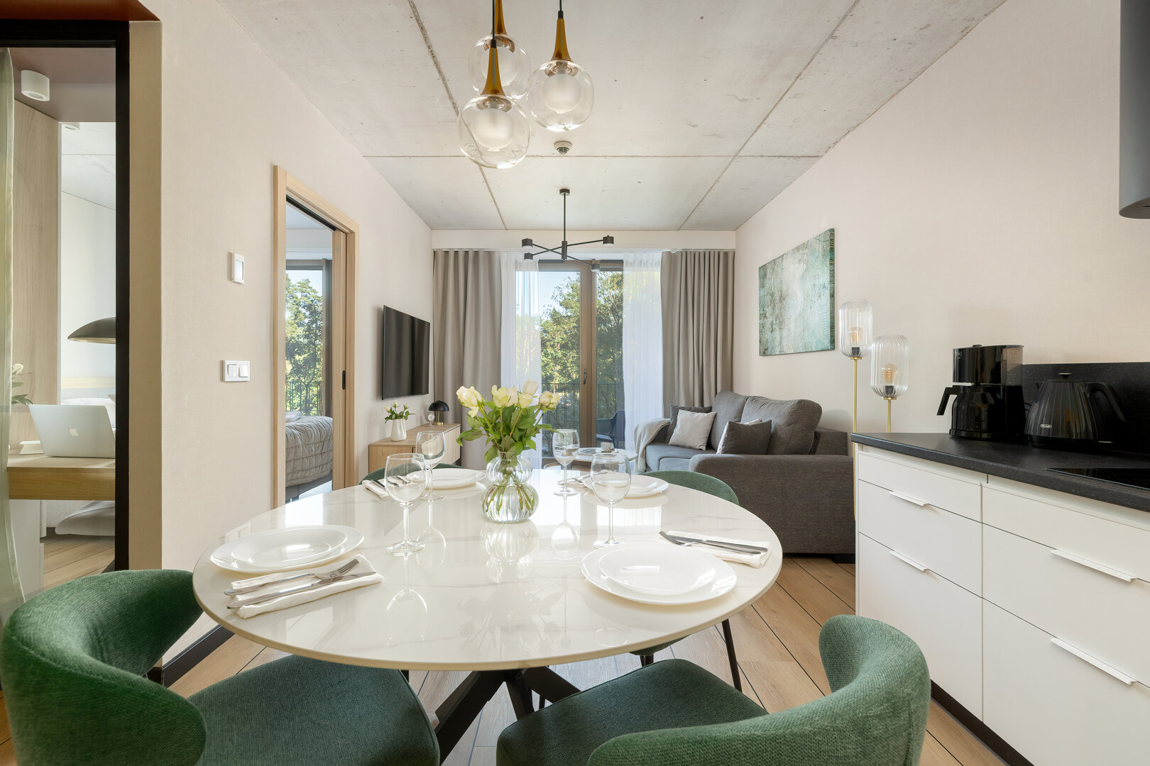 Das Apartment H114 befindet sich in einem modernen Gebäude mit einer markanten brutalistisch-loftartigen Architektur, direkt an der Promenade und am Strandzugang. Das Interieur verbindet moderne Elemente mit einem industriellen Stil und bietet ein geräumiges Wohnzimmer mit Küchenzeile, ein komfortables Schlafzimmer und ein elegantes Badezimmer. Große Fenster sorgen für reichlich Tageslicht, und der Balkon lädt zur Entspannung ein. Das Gebäude verfügt über zwei Aufzüge sowie eine Tiefgarage (Reservierung erforderlich). Ein perfekter Ort für diejenigen, die Komfort, Design und die Nähe zum Meer schätzen.